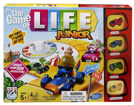 - Includes 1 game board, 4 junior car tokens, 1 spinner and base, 96 cards (in 2 decks) and 48 stars
