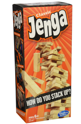 - Includes 54 Jenga hardwood blocks, stacking sleeve with instructions