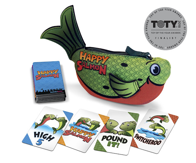 Happy Salmon is one of the HOTTEST games for 2017! Perfect for ages 6 and up and supports 3-6 players. This is the high-fivin', fin-flappin' card game that promises fun for HOURS!