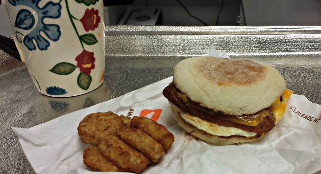 The best part is that the ENTIRE Dunkin' Donuts menu is available ALL day. Perfect for while running around non stop!
