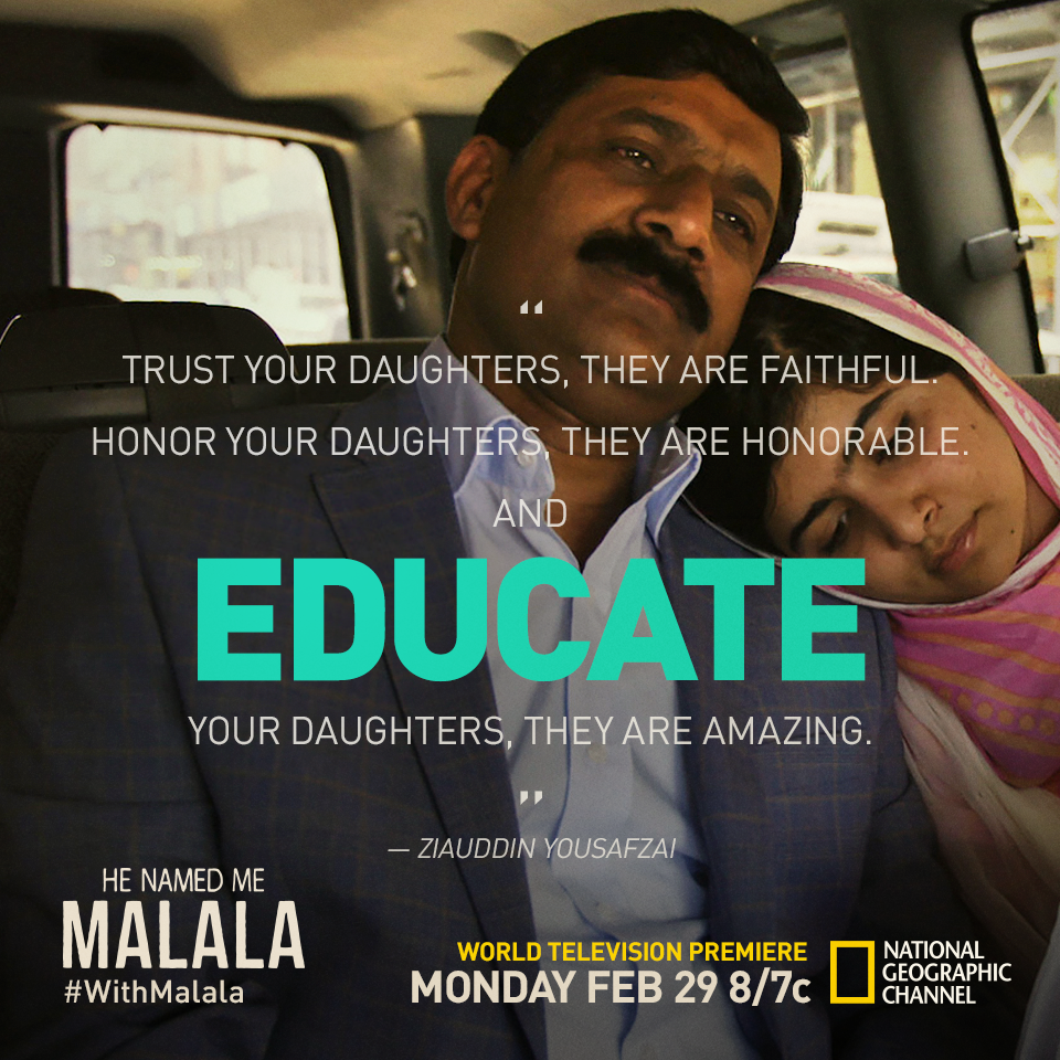 I am reading "I am Malala" in anticipation for "He Named Malala" to air on National Geographic Channel on Monday February 29th, 2016.