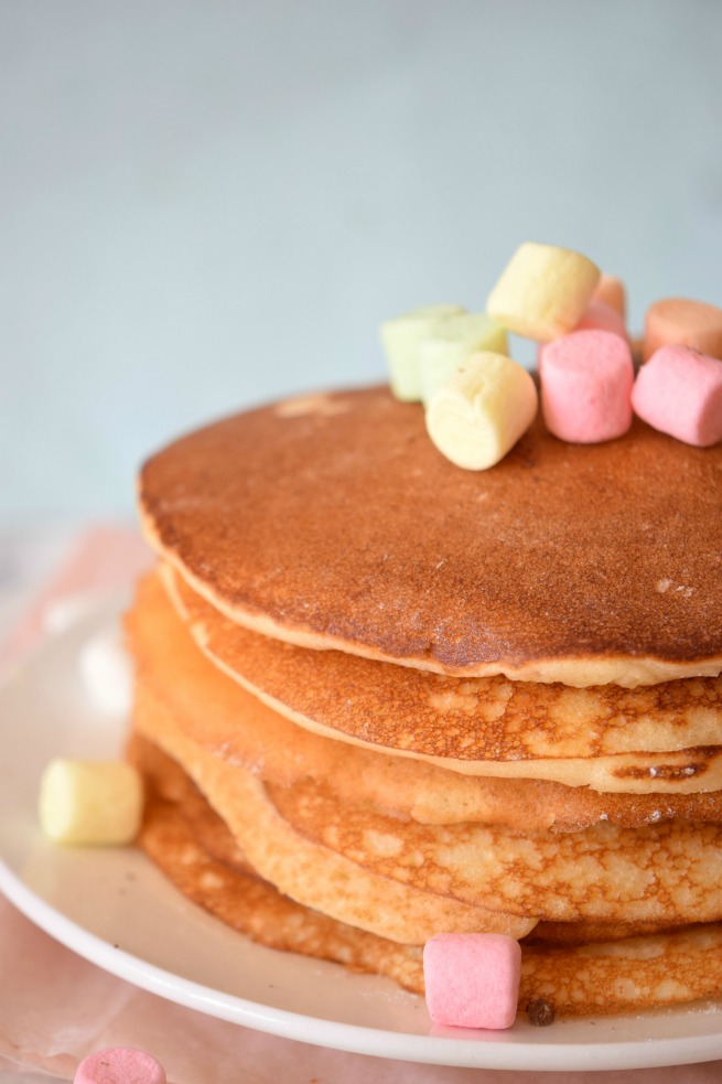 These perfectly spring-y and pretty pancakes will make a great touch to a spring or Easter themed brunch.