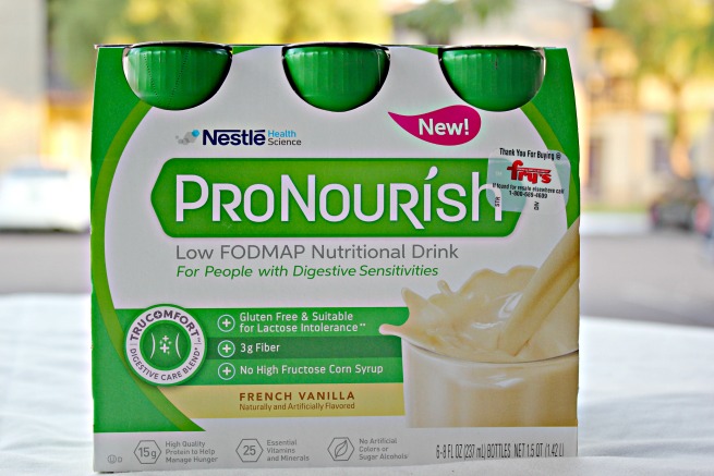 I located ProNourish at my Fry's grocery store (a Kroger banner store!) in the nutritional drink aisle and they come in packs of six. ProNourish comes in two flavors- French Vanilla and Strawberry Banana. I can't eat strawberries, so I only grabbed French Vanilla. It's DELICIOUS!
