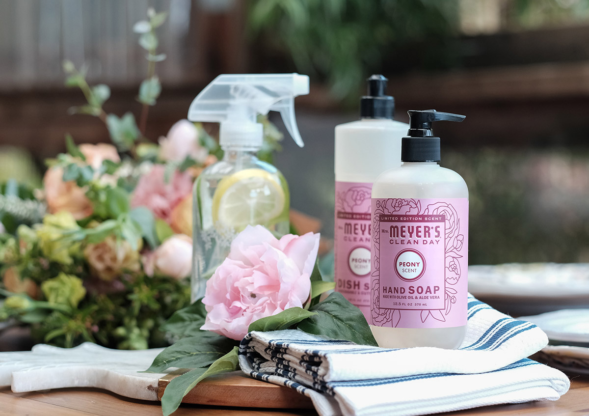 - A change of seasons calls for a change of scents. Put out a pretty new hand soap (I love Mrs. Meyer’s lilac) and a fresh towel. As a bonus, this Mrs. Meyer’s soap adds a pretty pop of spring color to your countertop.
