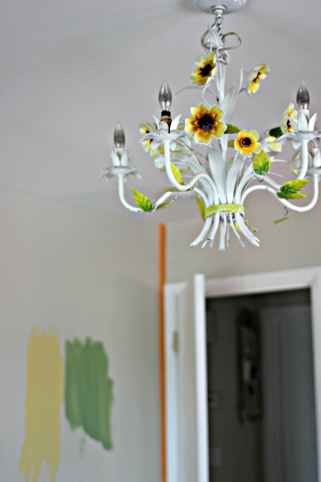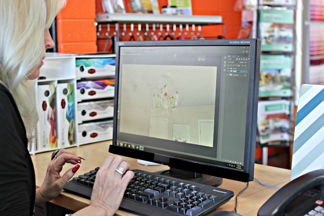 We met with our store's Professional Color Adviser to help pick the RIGHT colors for the room. See, this room is a special place for creativity and peace and it needs to reflect it. The inspiration for color is a unique and very cool chandelier. We brought in the photo (see below).