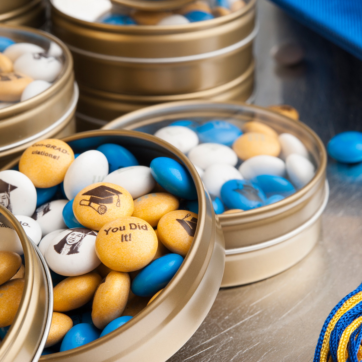 Personalized water bottles, t-shirts, and candy are perfect for any party- especially for a graduation party! M&M'S® has an incredible selection of colors to personalize M&M'S® and the ability to add pictures, clipart and meaningful text!