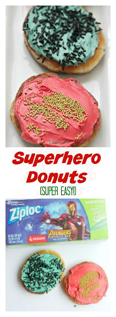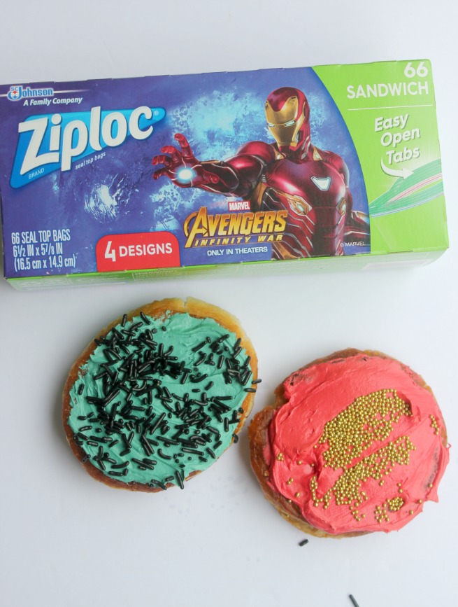 With the upcoming Marvel Studios’ Avengers: Infinity War movie release and these printed Ziploc® brand Sandwich bags, why not make superhero Donuts?! Kids and adults love superheroes (and donuts!).