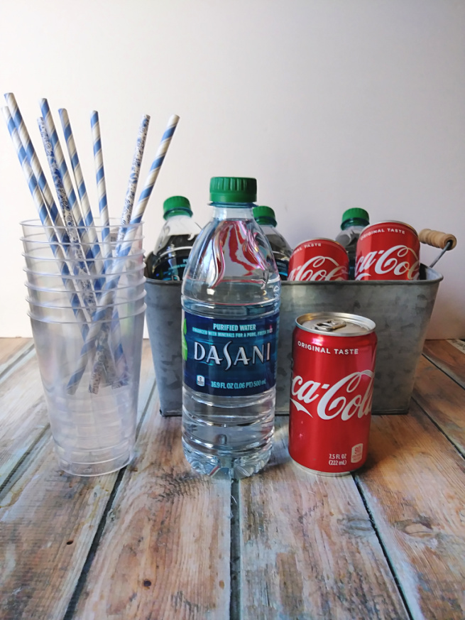 Designate a station with a variety of beverages for self-service. Have a bin with ice full of sodas, bottled water, iced tea, etc. and allow guests to grab their own drinks. I love to grab Coca-Cola® Mini Cans, for entertaining which are the perfect size when you want a little pick-me-up during a party! And, I stock up on Dasani® water to make sure everyone stays hydrated.