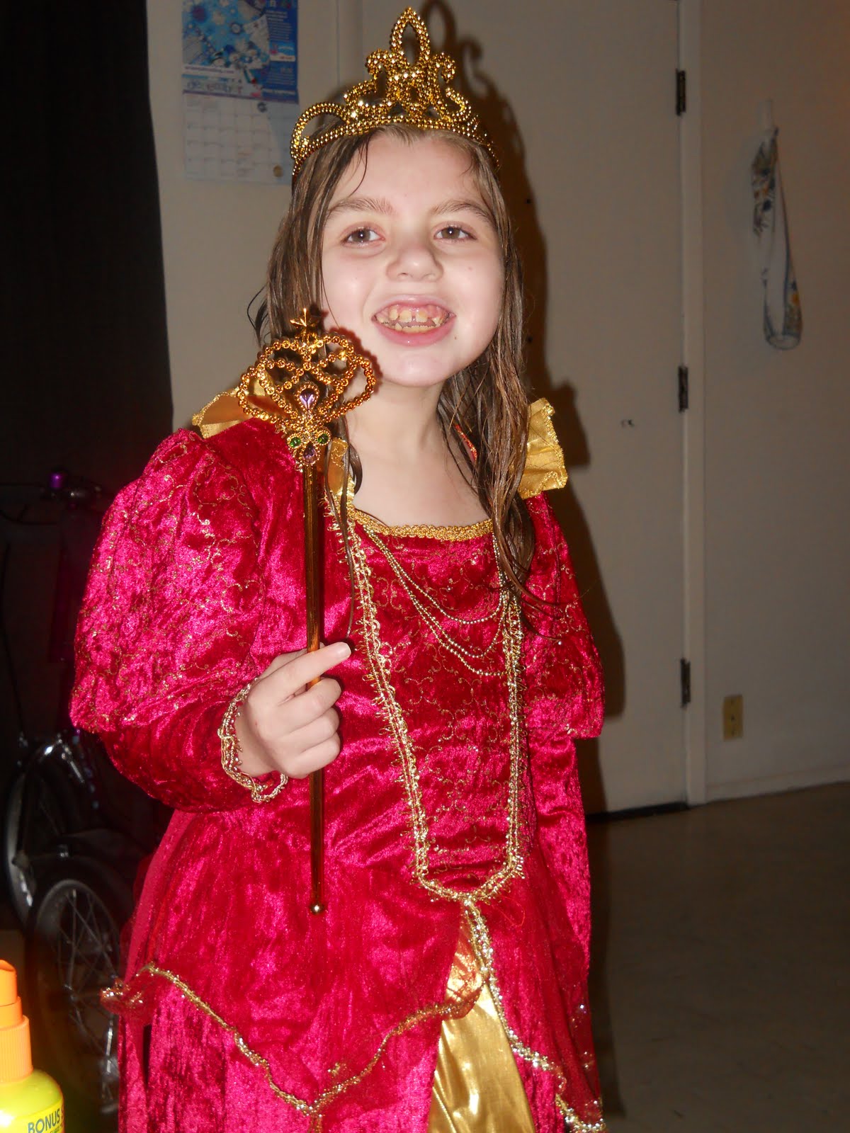 Well, I had Emma go over the site with me and asked her to pick out a costume that she would like to have and she picked out this adorable Kids Gold and Red Queen Costume. Shipping was very speedy. We ordered the costume in a size Medium which is a little too big for her now (she was wearing a size 6 when we ordered it but she just had a MAJOR growth spurt and I now have to seek size 8s for her... sigh) but she fell in love! The velvet is gorgeous! She adores the tiara and scepter and she made me dance with her at "The Ball" in "The Castle" (living room...lol) and I was designated as the Prince. Go figure! The quality of the dress is gorgeous and I am thinking it will be fun for her to wear it to the Renaissance Festival this March (if we go early, it won't be too hot)!
