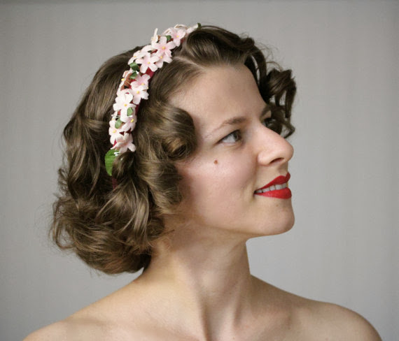 Another shop I think you should visit is my blogger friend, Jamie of ChatterBlossom. Her Etsy shop is a treasure trove of vintage goodies. Oh and her blog? It's aaaahhhhhhmazing. Seriously. AMAZING. I drool over her photos of her modeling gorgeous gorgeous vintage fashions, jewelry and her makeup and hair? I die. Seriously vintage heaven!
