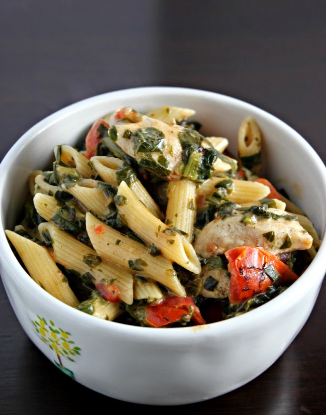 One-Pot Spinach Tomato Chicken Alfredo Pasta