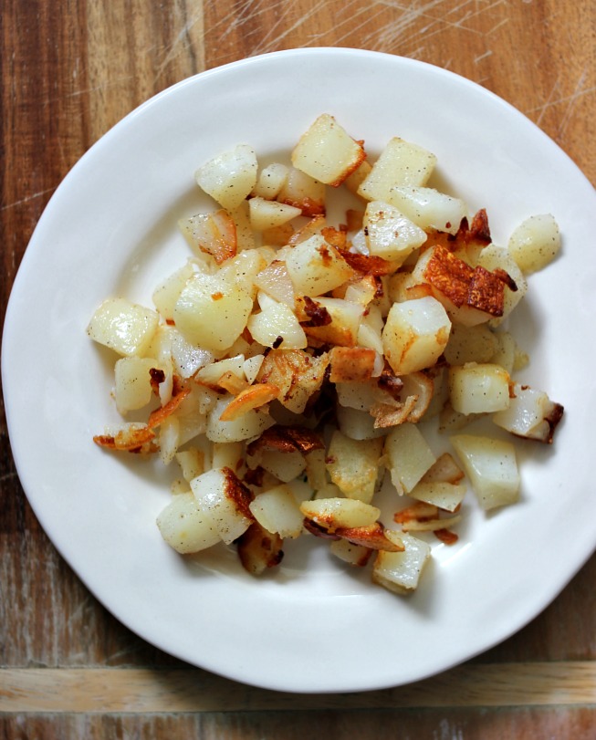Simply Potatoes®. They're bomb! I grabbed the Simply Potatoes diced potatoes with onions and I am good to go. No peeling, no dicing, just fresh, real ingredients that make cooking super easy.
